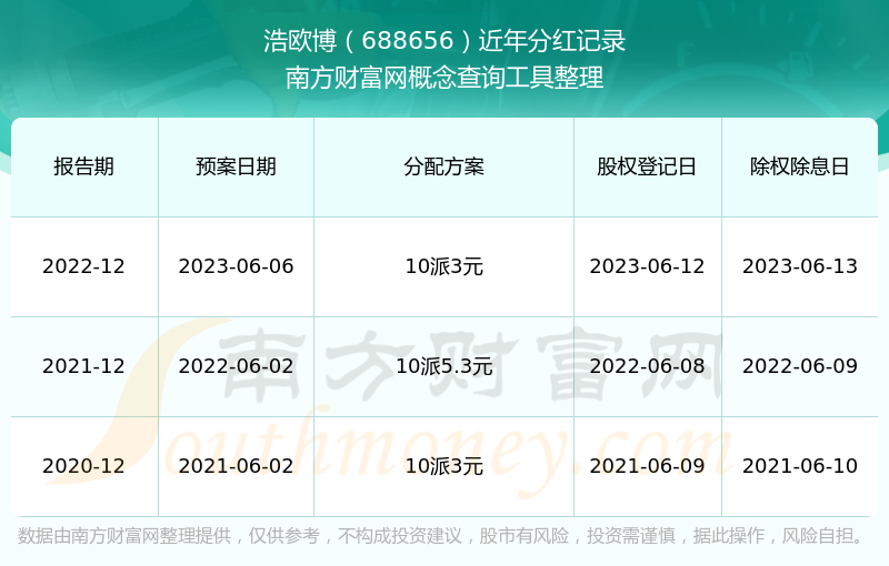 浩歐博最新一次公布的分紅方案:10派3元。