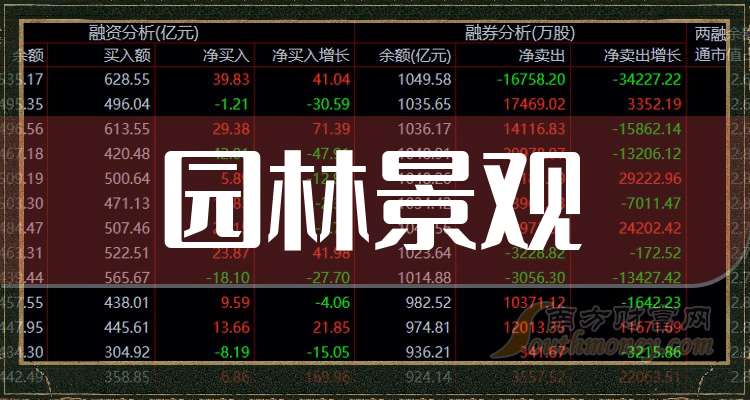 據(jù)南方財富網(wǎng)概念查詢工具數(shù)據(jù)顯示,相關(guān)園林景觀板塊上市公司有: