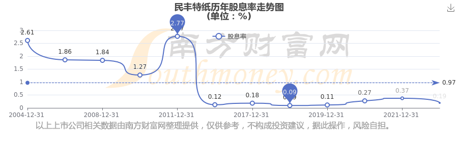 近年民豐特紙年度股息率走勢(shì)如下圖: