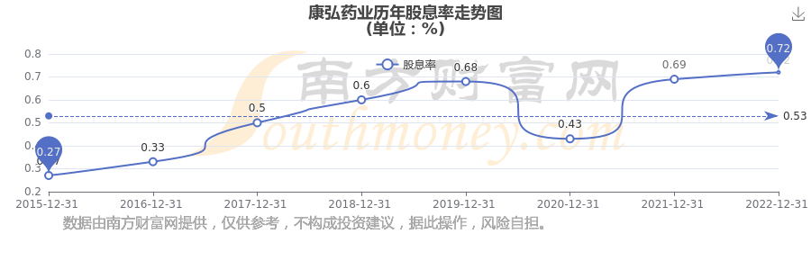 康弘藥業(yè)歷年股息率走勢如下圖: