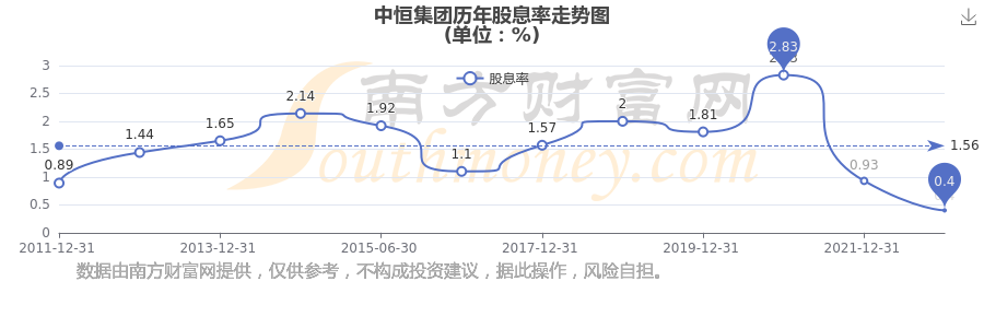 近年中恒集團年度股息率走勢如下圖: