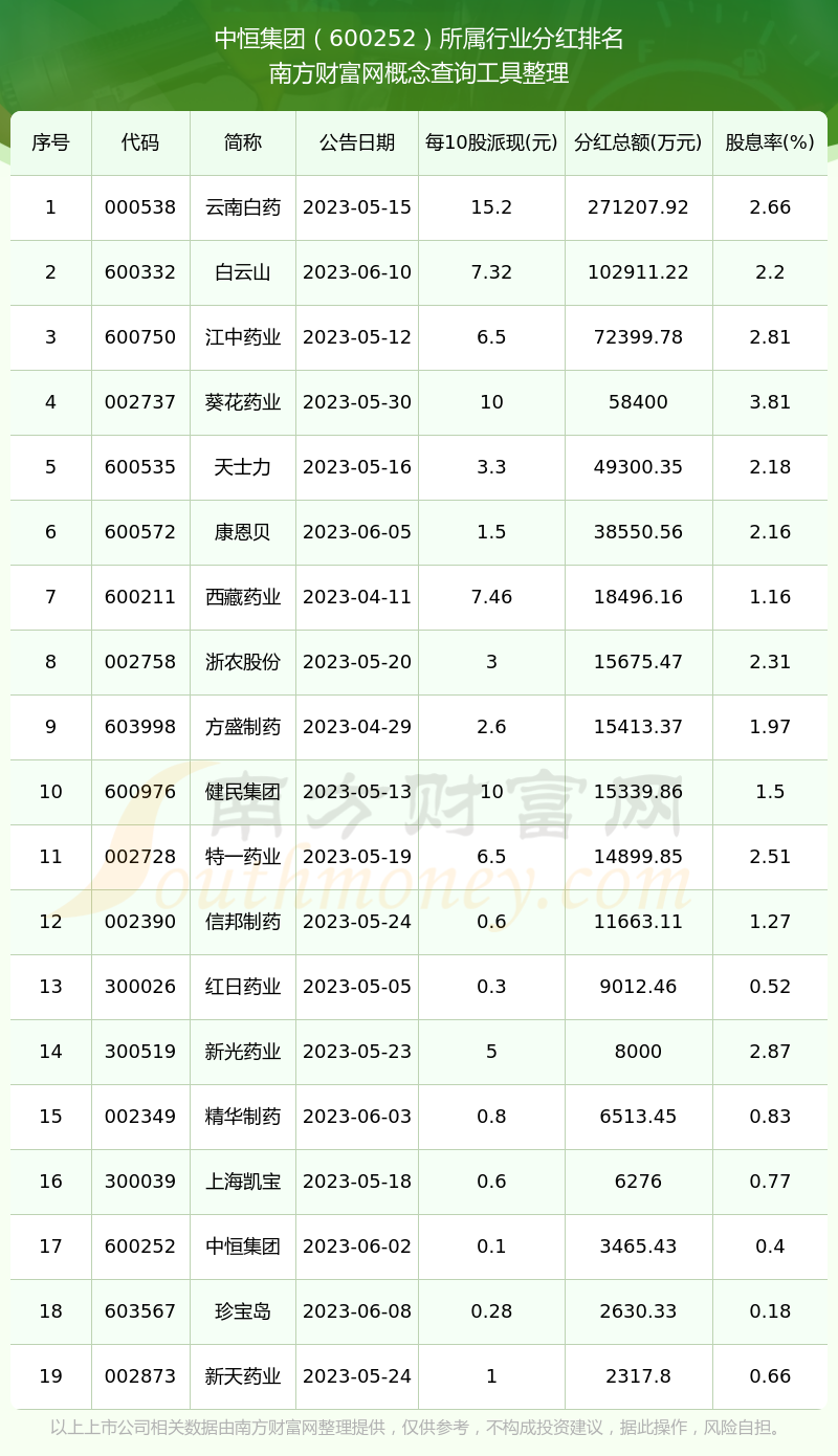 二、中恒集團600252行業(yè)分紅排名