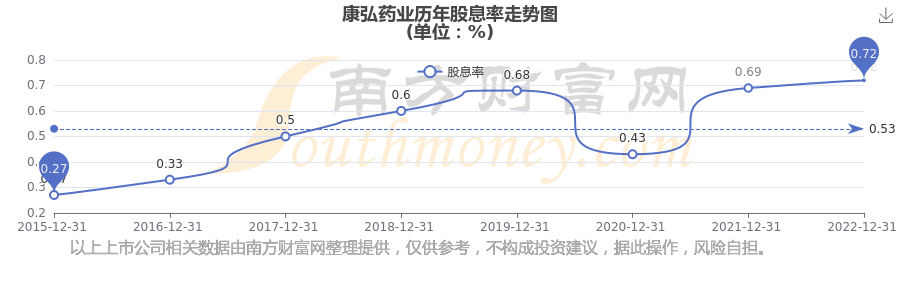 近年康弘藥業(yè)年度股息率走勢如下圖: