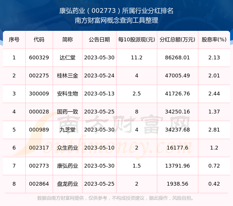 二、康弘藥業(yè)002773行業(yè)分紅排名